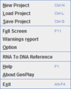 This menu allow you to load or to save a whole GenPlay project in a really HDD-space efficient binary compressed format. When you load a project of GenPlay all the track of your current project will be replaced by the one from the project you loaded and all the information that hadn't be saved will be lost. Important Note: The GenPlay project files may be dependent to the version of GenPlay you're using. Be sure to remember with which version of GenPlay you saved a project and use the same version next time you load your project.