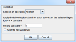 To execute this operation you need to have at least one microarray/sequencing layer loaded. For each exon of each gene of the selected gene layer, this operation computes a new score based on the window score from the selected layer that falls into the exon. There are 3 different ways to compute the new score: