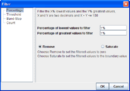 This option filters the genes with the X% lowest overall score and the Y% greatest overall scores where X and Y are two decimals and where X + Y <= 100. You can choose between removing the filtered values (remove) or setting the filtered values to the boundary values (saturate).