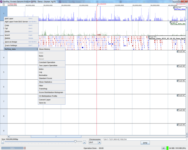 The amount of memory determines how many layers you will be able to load simultaneously. The programming philosophy behind GenPlay is to provide fast performances once the data is loaded. To achieve that goal the entire genome need to be loaded in memory for multiple layers at the same time. This results in high quality performance, but requires a lot of memory. The amount of memory needed per layer depends on the genome, the layer type, the window size, the data precision etc.