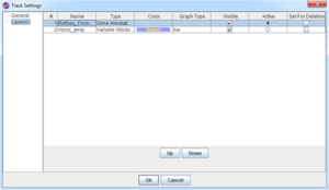 The operation will create C bins on each side of the start position of each gene. The size S of each bin is in base-pair. Depending of the method of calculation chosen the operation is going to compute the sum, the maximum or the average of the scores for each corresponding bin from each gene and display a bar graph of the result. The data can be exported by right-clicking on the graph and using the "save as" function.